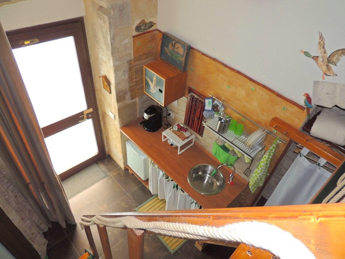 The eco-friendly B&B called l’Abbraccio is located in a very quiet residential area just 3 km away from the historic center of Ragusa. Our rooms are small, independent, air-conditioned studios made entirely of recycled materials, meticulously finished with care and passion. Each room has a small kitchenette with an electric stove, refrigerator, oven, coffee machine, and dishes, as well as a private bathroom complete with a shower, hairdryer, soap, shampoo, and towels and linens. Free WI-FI is also available.